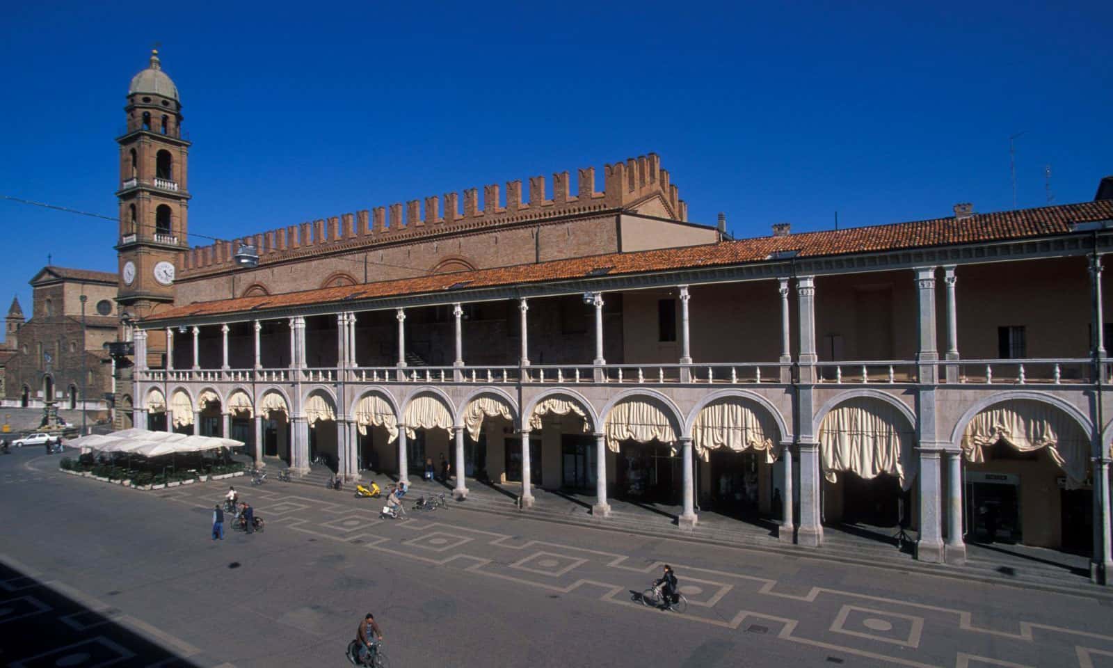Piazza del Popolo è la piazza più importante di Faenza. Qui, a partire dal XV secolo, si è sviluppata la vita politica della città, si è costruito l’elegante loggiato di Palazzo Manfredi e si è progettata la vita cittadina nell’ottica di una Signoria. Oggi restano intatte l’eleganza e la serietà, elementi che non condivide con la contigua Piazza della Libertà che invece si caratterizza per tenere insieme palazzi e monumenti di diversi stili architettonici.